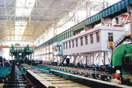 石横特钢型钢生产线年产量为50万吨,主要产品为10#~20#等边角钢和不等边角钢,坯料断面为165mm×165mm、180mm×220mm、220mm×290mm,坯料长度为5m~8m。中冶赛迪主要负责的是加热炉后辊道至冷床入口辊道之间的主轧线设备成套,主要包括:2架BDCD750开坯轧机及前后推床、翻钢机,4架NHCD650短应力线轧机,前后工作辊道,以及其他辅助设备、周转件和备品备件等。(罗贤勇 郭显平)