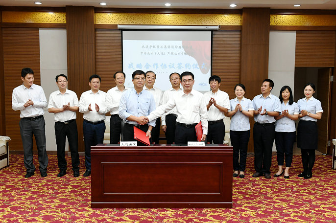 9月28日下午,中冶北方(大连)工程技术有限公司(以下简称“中冶北方”)与大连华锐重工集团股份有限公司(以下简称“大连重工”)签订战略合作协议。中冶北方党委副书记、总经理郭永亮,大连重工副董事长邵长南代表双方在协议书上签字。
