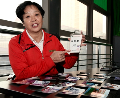 孟玲英在展示她在庆祝澳门特别行政区成立大巡礼活动主席台表演的证件.