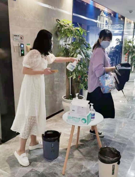 办公区域严格管控——落实“四必”措施(身份必问、体温必测、信息必录、口罩必戴),对外来人员进行登记、查验健康码与“通信大数据行程卡”,严格落实“四必”防疫措施。