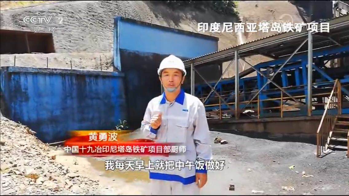 国庆当日上午,CCTV-2“改革开放40年”栏目展示了中国十九冶印尼塔岛铁矿项目。该片以塔岛项目上的一名厨师为主人翁,讲述了十九冶人为积极响应国家“一带一路”倡议,不辞辛劳,远赴异国他乡贡献中国力量的感人故事。视频中讲道,在修建印尼塔岛铁矿项目无转运站管式胶带运输走廊时,为了节约时间,提高工作效率,建设者们舍弃了中午休息的时间。作为厨师的黄勇波在早上做好午饭,让工人们用饭盒带到工地上吃,为项目的早日建成作出了自己应有的贡献。