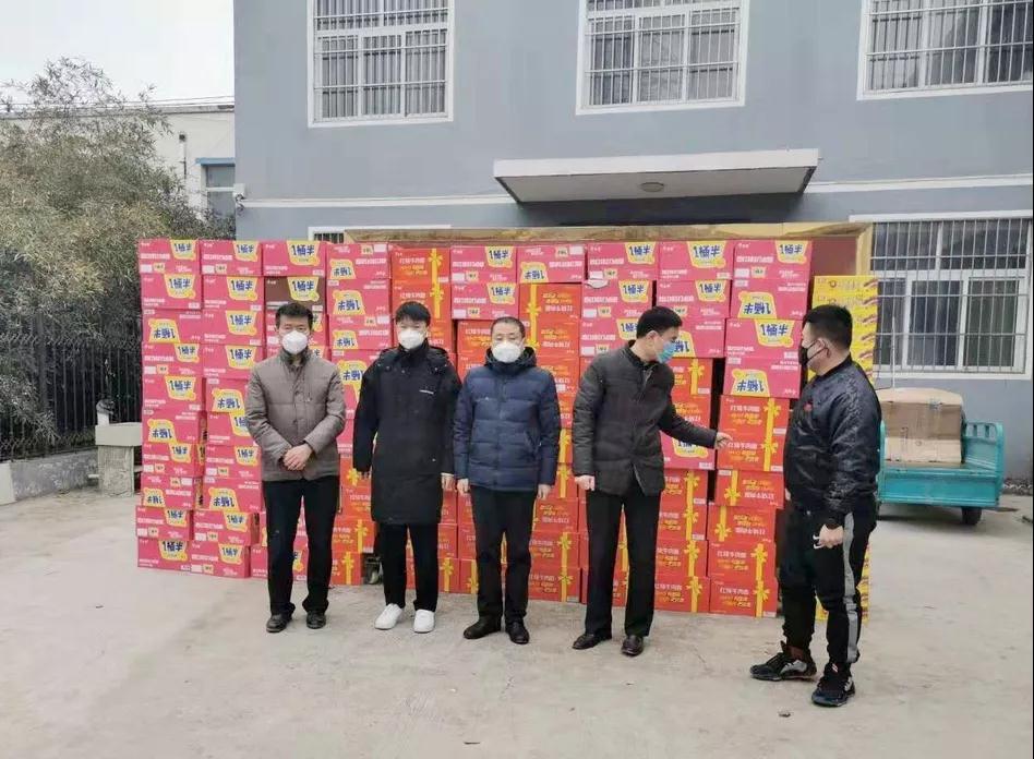 在联系好运输车辆并做好车内消毒之后,2月6日上午,项目人员便将200箱方便面、40箱火腿肠等物品送到了安阳县瓦店乡政府和辛村镇政府战“疫”一线工作人员的手中。