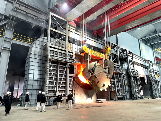 12月24日8时58分,中冶华天总承包的天柱炼钢项目第一座转炉(2#转炉)正式开始吹炼;10时13分,第一炉合格钢水顺利出钢,标志着2#转炉热试投产一次成功。