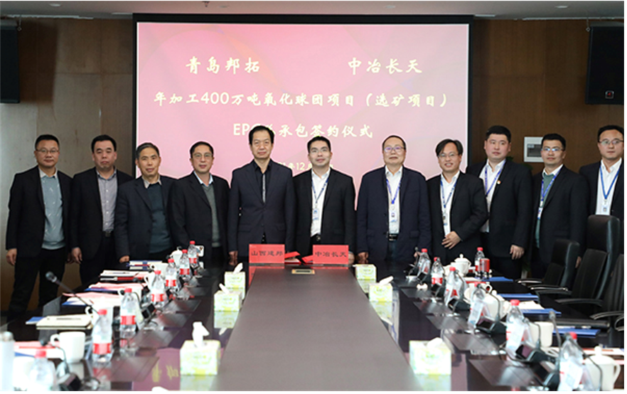 12月22日,中冶长天与山西建邦集团有限公司(以下简称“山西建邦”)子公司青岛邦拓新材料科技有限公司(以下简称“青岛邦拓”)签订400万吨氧化球团项目(配套年加工500万吨选矿项目)总承包合同。山西建邦总经理张锐和中冶长天党委副书记、总经理乐文毅分别代表双方签字。