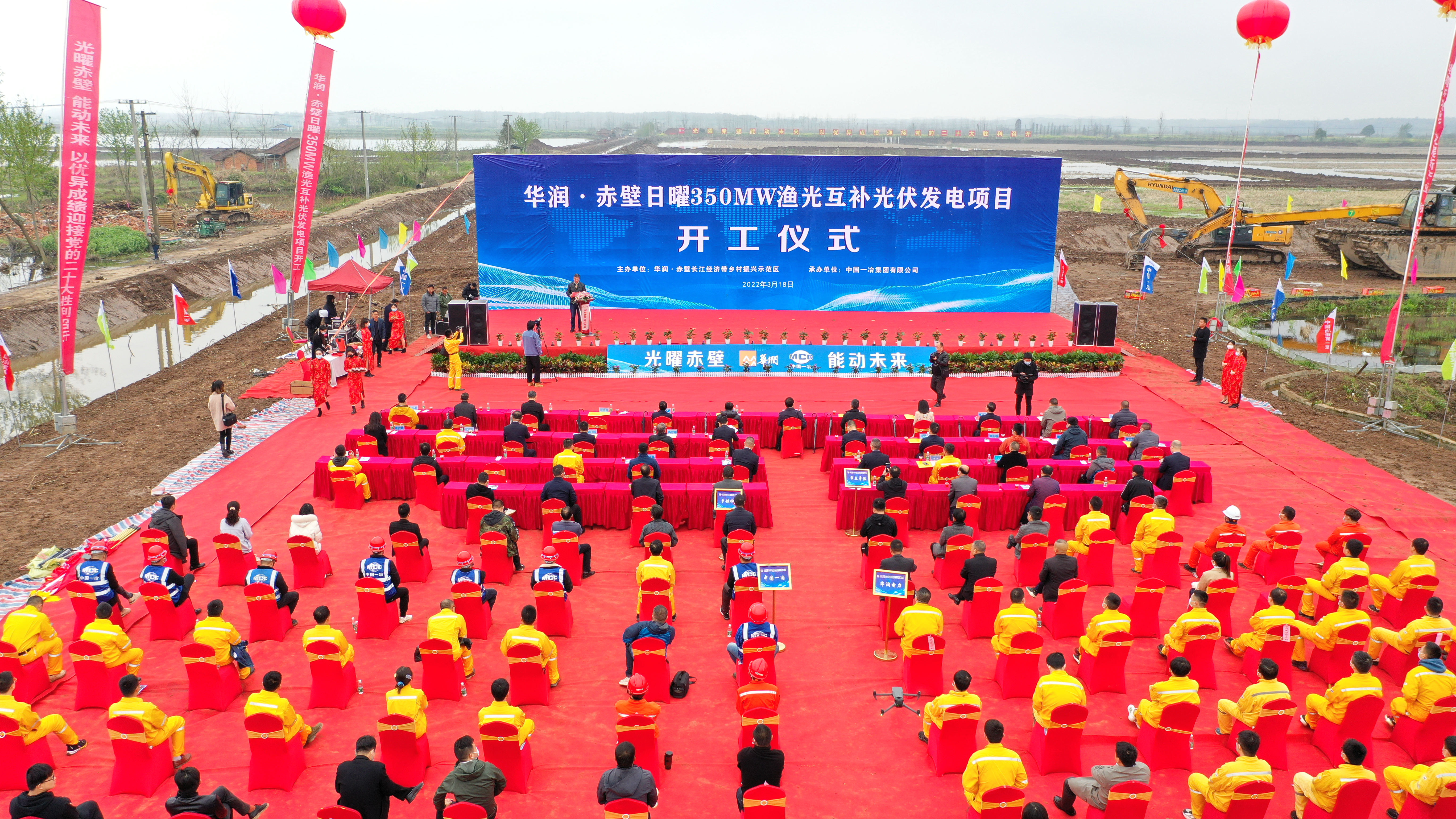 3月18日8时30分,在赤壁市黄盖湖镇,由中国一冶承建的华润赤壁日曜350兆瓦渔光互补光伏发电项目举行开工仪式。该项目为华润目前国内单体最大的渔光互补光伏发电项目,对推动长江经济带长足发展、实现乡村振兴具有重要意义。