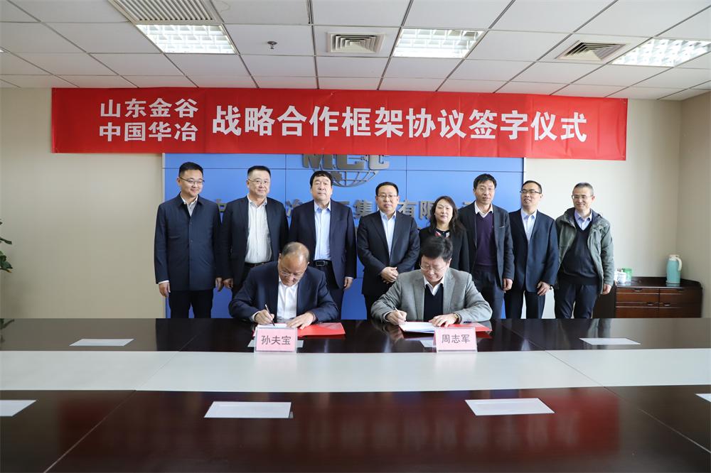 3月22日,中国华冶科工集团有限公司(以下简称“中国华冶”)与山东金谷控股集团有限公司(以下简称“山东金谷”)在北京签订战略合作协议,双方将在矿山资源开发建设运营等方面开展深入合作。中国华冶总经理周志军、山东金谷董事长孙夫宝分别代表双方在战略合作协议书上签字。