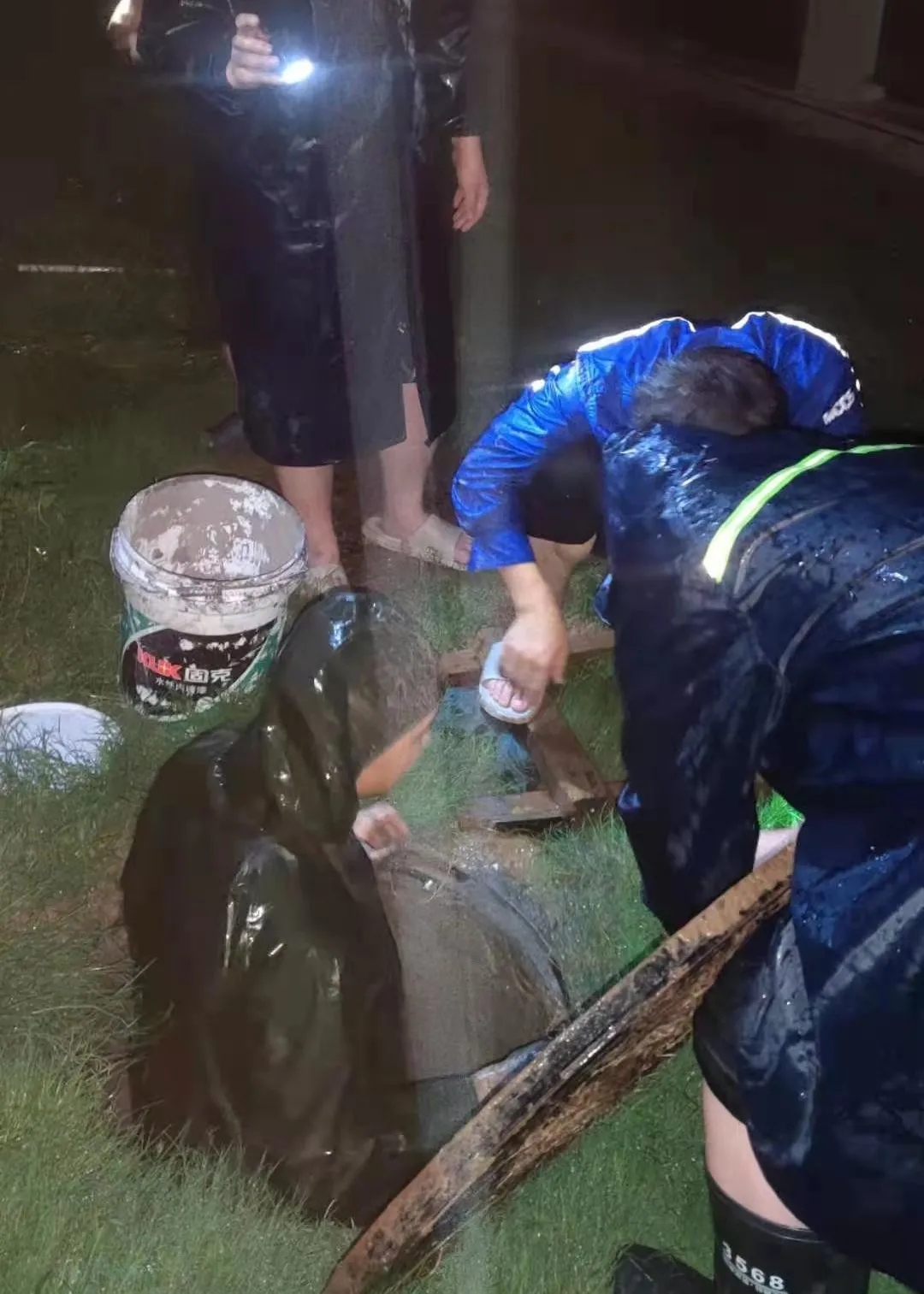 平顶山叶县G234道路项目接到相关部门和公司气象预警通知后,立即启动防汛应急预案,第一时间对现场进行隐患排查,落实应急抢险标准化作业措施。7月20日早,叶县龚店水利站发布白龟山水库泄洪通知,项目部立即启动灰河、大麦河、白龟山干渠等河道防汛应急预案。在接到抢险任务后快速反应,短短30分钟就组织全体员工和5台挖掘机按计划奔赴三个抢险河道,冒雨奋战,全力疏通泄洪河道、开掘新泄洪渠,圆满完成泄洪支援工作,同时覆盖白色材料布,防止泥浆倒灌进入灌溉渠导致水源污染,在危急关头彰显央企担当。