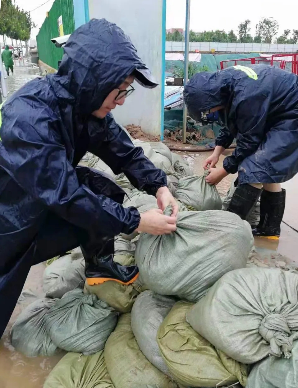 面对强降雨导致的洪水,郑州市西南部二七区马寨镇的郑州雍景城佳苑项目总包工程于7月19日启动应急预案,提前准备好沙袋、3台抽水泵、雨衣、雨鞋等物资,9名项目管理人员冲在第一线,24小时监控灾情。20日,项目部配合业主单位对园林进行抢险,清除管道淤泥,并用3台抽水泵对地下室40厘米深积水进行抽排,目前水势可控,无人员伤亡,正随时待命支援群众。