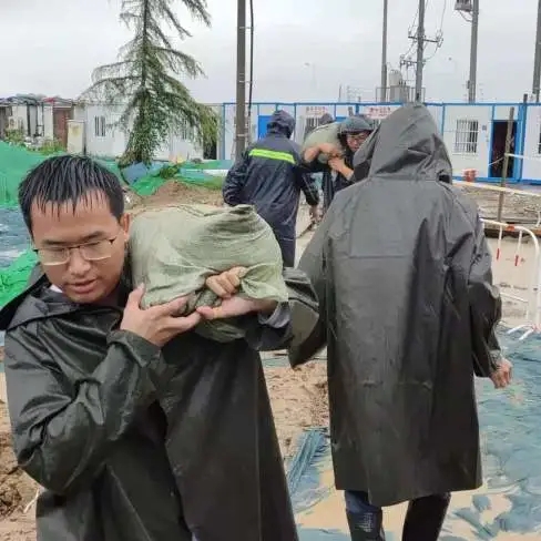 五冶中原分公司立即成立防汛应急指挥部,对各施工现场排查危险源,进行安全摸底,全面拉起警戒线,成小组建制进行抗洪和道路排水系统巡查。在发现中原科技城项目工地周边道路积水上涨,存在积水倒灌进入深基坑的风险后,立即调配公司机关和项目有生力量,携带抽水泵、尖铁锹、强光手电、雨靴、雨衣、应急干粮等前往项目现场,用沙袋堵住施工大门,加固施工围挡,防止外部积水倒灌,并对深基坑内积水实施抽水作业,抢险持续10小时,确保了生产现场平安。在此基础上,五冶中原分公司防汛应急指挥部向郑东新区管委会发出抗洪抢险请战书,与当地街道办、建设单位及时沟通,请求出战进行抗洪抢险,践行央企责任。