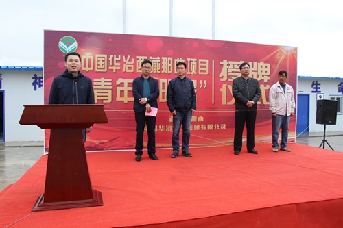 邯郸团市委书记陈涛为中国华冶集团西藏那曲管廊项目“青年文明号”现场授牌