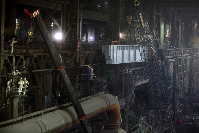 宝钢一炼钢大型行车梁更换。 上海宝冶集团 任尔强 摄