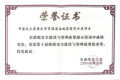 日前,在天津市总工会组织召开天津市第十届班组安全建设与管理成果展示活动中,中冶天工东丽区万新街、新立街城中村改造项目工程安全部班组、天津官港溪谷林苑住宅小区项目班组荣获优秀奖,同时中冶天工工会被授予“优秀组织单位”。