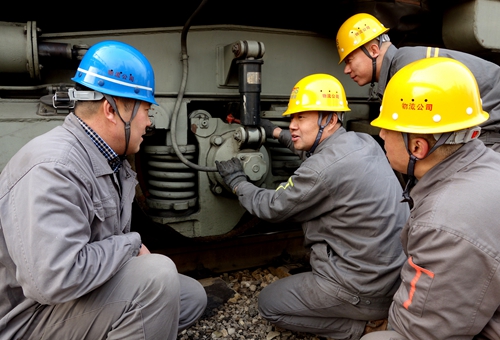 12月22日,河钢唐钢物流公司炼铁站作业区青年安全监督岗人员正在现场对机车设备冬季运转情况进行隐患排查。