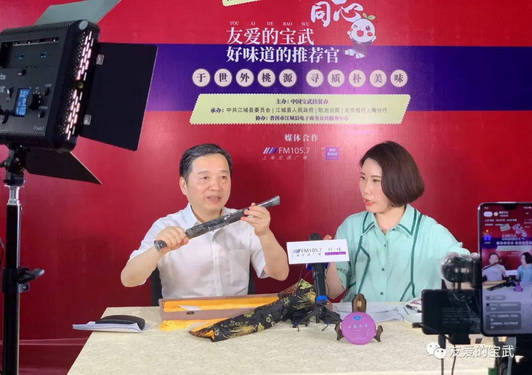 5月27日晚上8点,陈德荣走进云南省普洱市江城县直播间,联袂上海交通广播电台主持人颖子,为扶贫特色农产品直播带货,秒变“流量一哥”,现场“吃播”,吸粉无数!