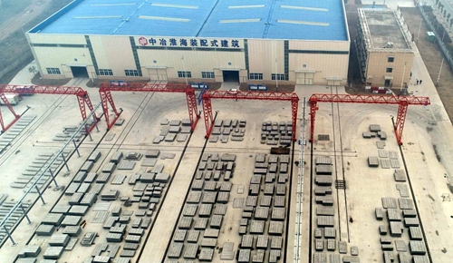 中冶淮海装配式建筑生产基地由二十二冶、安徽淮海实业发展集团、淮北市交通投资集团有限公司、淮北市东兴建设投资有限公司等四家企业共同出资兴建,位于淮北市杜集经济开发区紫藤北路西侧,占地约141亩,总建筑面积94047平方米,年产15万立方米装配式混凝土预制构件。生产基地设置两条PC自动化生产线和一条PC固定生产线,PC自动化生产线包含一条综合生产线和一条叠合板-内墙板生产线,具备新型装配式混凝土建筑、装配式钢结构建筑及适用于“美丽乡村”建设的低、多层装配式建筑部品部件的研发、设计、拆分、生产、安装能力,二十二冶负责基地的运营、管理等相关事宜。基地投产运营后,可有效提高产品精度、解决系统性的质量通病、延长建筑使用寿命,也可有效提高住宅产业化科技水平及生产建设的劳动效率,带动淮北市及周边地区快速发展和转型升级,全面推进生态文明建设,让住宅产业化成为打造“中国碳谷•绿金淮北”的重要引擎,也为推动淮北市城市建设提供新动能。
