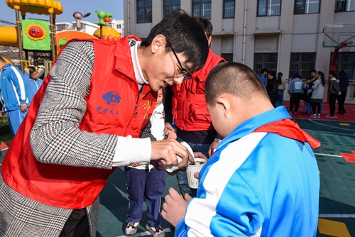春回大地,万物复苏。3月11日,在这个阳光明媚的日子里,中冶天工爱心志愿者服务队来到了天津市津南区培智学校,同师生们共同开展了“种下 浇水 长大”主题升旗互动实践活动,旨在以奉献爱心的方式,帮助培智学生学会操作认知,增强孩子们的交流和适应能力。