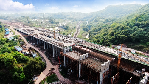 泸州二环路(纳溪段)项目K1+610跨倒流河大桥施工现场