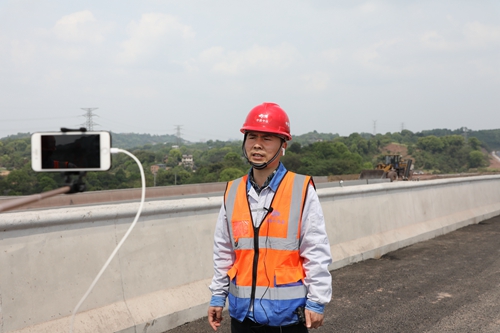 活动现场,媒体记者跟随视频主播首先来到K1+610段跨倒流河大桥施工作业点,线上远程观摩桥梁结构和施工组织情况。项目经理段江涛对桥梁体量、地形条件、支撑体系、技术难点等作了详细介绍;施工负责人夏立元表示,跨倒流河大桥是确保“6•30”节点的控制性工程,项目部将发扬“一天也不耽误,一天也不懈怠”朴实厚重的中冶精神,充分发挥党员的先锋模范作用,加班加点,奋力拼抢,保质保量完成节点目标。随后,主播带领媒体记者跨越三公里,沿线“云参观”桥梁、路基、路面、边坡等施工现场。最后,直播现场来到已完工的蓝安互通立交桥上,段江涛介绍,蓝安互通立交的建成将实现蓝安大道和二环路的全立体互通,将有效连接泸州市纳溪区与主城区及正在建设的医教园区,是全线最重要的互通立交,为确保4月30日达到通车条件,项目部正在全力以赴做最后的冲刺。项目工程部部长王先乾从技术运用层面补充道:“蓝安立交施工过程中利用了BIM系列软件,结合无人机倾斜摄影技术进行三维实景地形建模,完成最合理、最科学的改道路线设计和施工总平面布置,有效节约了成本。3D可视化技术交底,形象直观地提高了作业人员的安全意识、质量意识和施工技术意识,最大限度避免了行业质量通病的出现。”