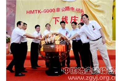 当嘉宾一齐按下启动球,400吨级大型矿用自卸车这一巨无霸揭开了神秘的面纱,展现在大家面前,在场的所有人无不感到震撼和自豪。HMTK-6000非公路电动轮矿用自卸车是湘重公司在历经多年的技术准备之后,成功自主研发出来的国内首台400吨超大型矿用自卸车,是湘重公司落实国务院关于《装备制造业调整和振兴规划》、实现产品结构调整和战略目标转型的重大成果。