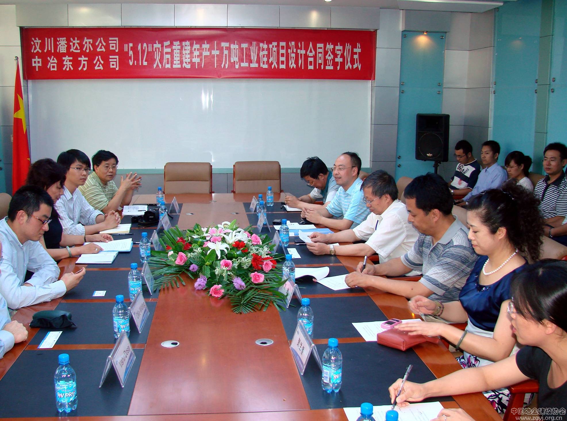 2009年7月28日15时28分,汶川潘达尔硅业股份有限责任公司“5.12”灾后重建年产十万吨工业硅项目设计合同签字仪式在中冶东方举行。汶川潘达尔硅业股份有限责任公司董事长、总经理陈晓燕女士,中冶东方副总经理辛胜利出席了签字仪式,合同签字仪式由中冶东方总经理助理、市场营销中心总经理陈岩峰主持,中冶东方负责该项目的三十余名有关设计及管理人员一同参加了会议。