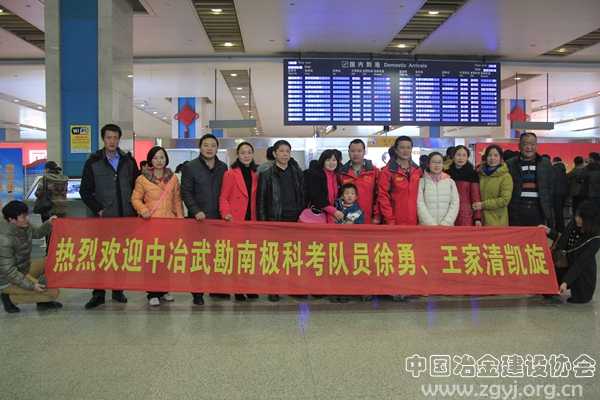 1月18日下午7时许,中冶武勘参与南极第31次科考的两位科考员工徐勇、王家清抵达武汉天河机场。受中冶武勘董事长、总经理朱小友委托,公司职能口组成专班代表公司党政工团、携员工家属前往迎接他们凯旋。