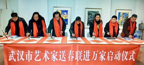 1月12日,武汉市艺术家送春联进万家启动仪式暨中国一冶版画研究院新春茶话会在一冶版画院举行。著名书画家孔奇先生、武汉市书法家协会副主席龚勋先生等嘉宾出席了启动仪式并与一冶版画作者欢聚一堂,座谈交流,喜迎新春。