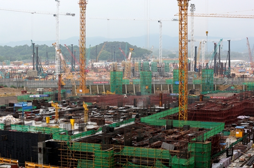 由上海宝冶集团总承包施工的深圳市莲塘口岸项目,为承担香港与深圳东部、惠州以及粤东、赣南、闽南之间的过境货运交通兼客运的综合性客货口岸。项目分为旅检区和货检区,建筑面积13.3万平方米,计划于2018年3月底竣工。建成后的莲塘口岸和香港建设总承包的香园围口岸一道,将成为实现深港跨界交通“西进西出、东进东出”总体格局的重要口岸,而连接莲塘口岸与香园围口岸的大桥采用“一桥两地建、一个标准(英标)”,具有重要的政治意义。上海宝冶集团在工程进度、安全、质量、绿色文明施工方面齐头并进,充分展示了优秀的施工企业形象,唱响了企业品牌。目前,莲塘口岸地下基础工程基本完成,已进入大面积土建施工阶段。图为上海宝冶集团和香港建设单位“同台竞技”共显风采。 上海宝冶集团 潘柏佺/文 沈有福/图