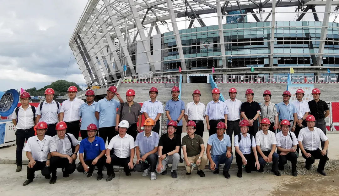 8月18日,中冶建研院董事长、中国工程院院士岳清瑞一行赴三亚体育场项目考察交流,观摩研讨中冶建研院牵头研发的波形锚CFRP平行板索在三亚体育场索结构中的应用成效。该项目是CFRP板索在大跨体育场实际工程中的首次大规模应用,属于国际首创,对于CFRP材料在大跨空间结构乃至于新建结构中的推广应用具有重要的引领作用和里程碑意义。