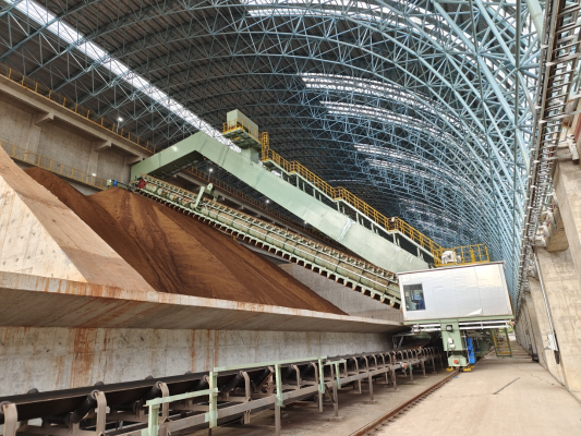 宝钢德盛原料场主体采用中冶赛迪专利ECIA-M型封闭式环保料场和B型封闭式混匀料场,并配套建设汽车输入、混匀配料及块矿筛分、供料等子系统。