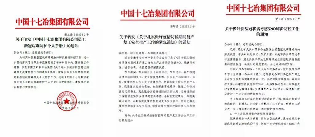 1月21日,针对公司国内项目基本放假的情况,中国十七冶集团及时下发了疫情防控工作通知,要求各二级单位立即行动,把员工的生命安全和身体健康放在第一位,采取切实有效措施,做好防控工作,科学宣传疫情防护知识。同时公司当即积极加强舆论引导,加强有关政策措施宣传解读工作,坚决维护社会大局稳定。为了加深员工对新型冠状病毒的了解,公司新型冠状病毒及疫情发展情况进行了及时宣传通报,促进员工引起高度重视,做好自我防控工作。