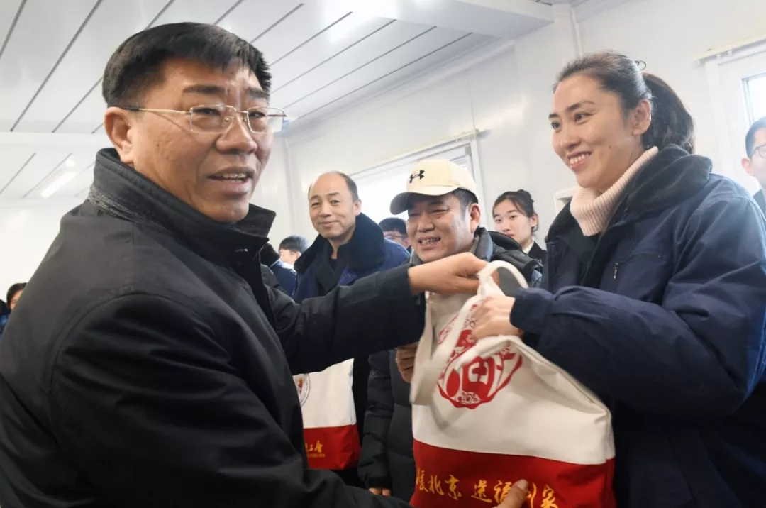 张工、刘伟等领导来到首钢滑雪大跳台现场,为首钢一线职工代表送去慰问金和新春福包,向大家致以诚挚的节日问候。