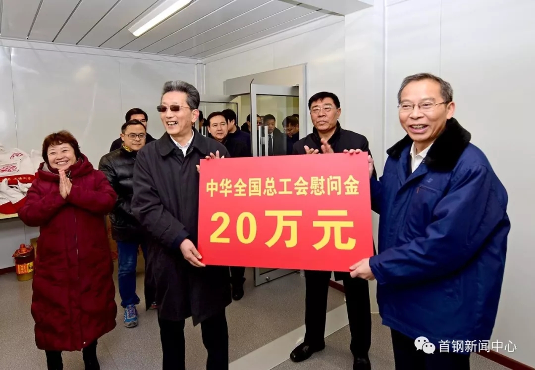 在2020年新年即将来临之际,冒着严寒,2019年12月31日,中华全国总工会副主席、书记处书记、党组副书记张工率全国总工会慰问团来首钢送温暖。北京市人大常委会副主任、党组副书记、北京市总工会主席刘伟率北京市总工会慰问团一同慰问。北京市总工会党组书记、副主席郑默杰,全国总工会相关部门领导郭明山、张苏仲以及市总工会相关领导韩世春、周玉忠陪同慰问。首钢集团领导张功焰、梁宗平、王世忠、梁捷参加。