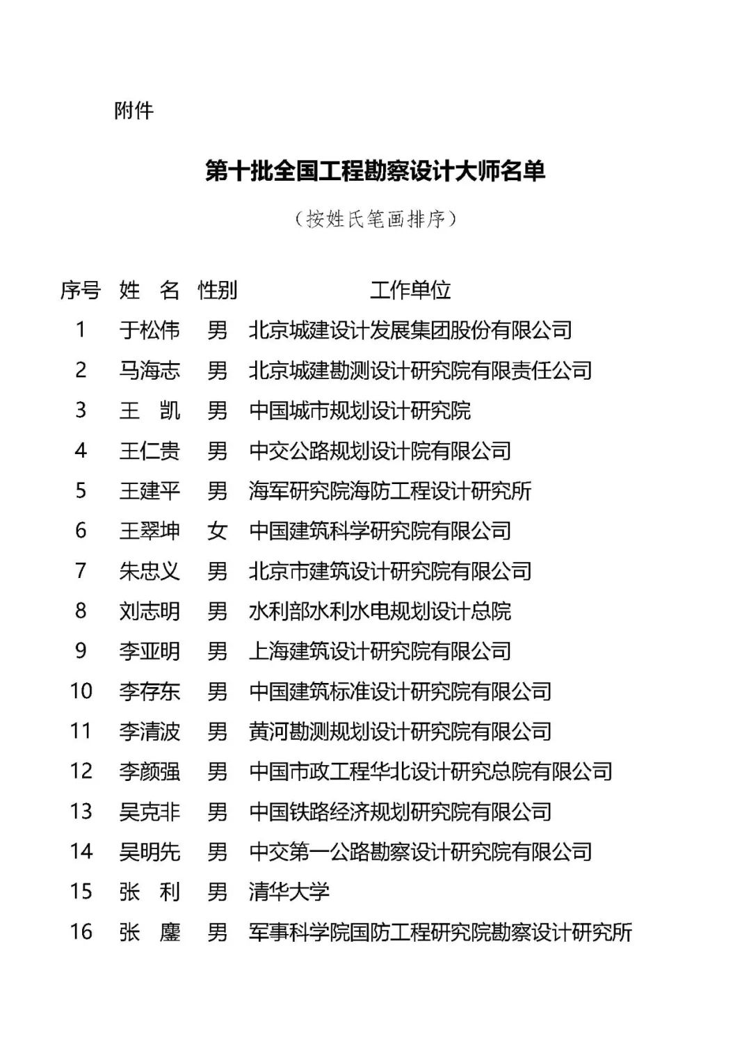 住房和城乡建设部公布第十批全国工程勘察设计大师名单