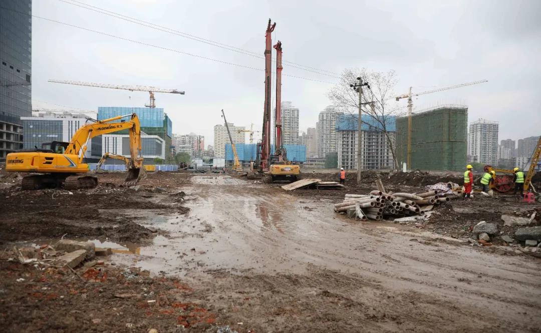 该项目位于临江大道与秦园路交汇处,紧邻绿地606项目,吸引了武汉地区六家有实力的岩土基础专业公司共同参与建设。此次,我公司承建了该项目B2、B3、B4三个地块的基坑支护工程任务。据了解,截至目前,我公司是众多参建单位中复工强度最高的,主要表现在:生产最先启动、项目管理人员最先入场、劳务人员到岗最多、防疫物资准备最充足、进场设备数量最多、钢筋等主材最先进场、临设搭建最先完成。在这次防疫和复工的大考中,中冶武勘华夏幸福项目部用实际行动向业主交上了一份满意答卷。