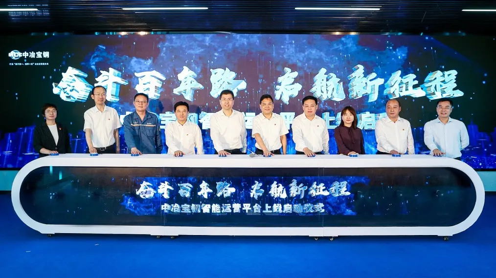 7月23日,中冶宝钢在中国中冶•冶金运营服务国家队主题馆隆重举行以“奋斗百年路,启航新征程”为主题的中冶宝钢智能运营平台上线启动仪式。上海市宝山区副区长翟磊,中冶集团党委常委、副总裁白小虎,宝钢股份设备部副部长邵志新出席启动仪式。中冶宝钢党委书记、董事长王振智出席仪式并讲话。中冶宝钢总经理、党委副书记刘欣致欢迎词。中冶宝钢副总经理兼设备智能运维技术研究院院长蔡志强主持仪式,并对中冶宝钢智能运营平台的功能进行详细介绍。