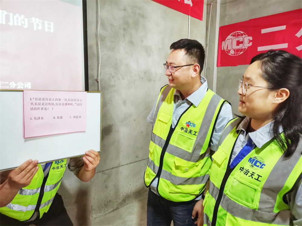此外,中冶天工将本次活动与学习党史、新中国史、改革开放史、社会主义发展史相结合,以夫妻组队的形式开展党史知识竞答,夫妻双方一人抢题,另一人进行作答,在考验双方默契的同时宣扬党的历史,引导广大职工从党的百年奋斗史中汲取精神养分,树立正确的历史观、民族观、文化观。项目党员代表分享了夫妻之间的爱情故事,从相互扶持创建温馨的“小家庭”,到携手共进、打造项目“造血机器”营造团结和谐的“大家庭”,通过两人“创温馨‘小家’,建和谐‘大家’”的故事引导广大职工自觉将爱家与爱企、爱国相统一,将“永远跟党走”的理想信念深深扎根于每个家庭当中。