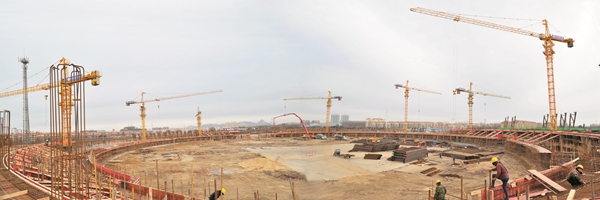 截至目前,体育场3.6米平台全部施工完毕,7.2米平台施工完成50%;斜柱型钢骨架除顶部外,全部制作完毕。体育馆地下室全部施工完毕,并回填完;浅基础及地梁全部施工完毕,正在进行土方回填工作;4.95米平台模板支撑架搭设完成50%,正在分区域进行施工。 (中国二十二冶集团 王厚亮 周婷婷 文/图)