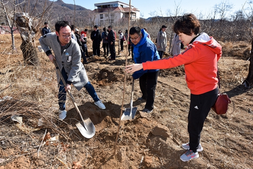 在和煦的春风中,大家来到了柿子树园,和当地的树农一起栽种果树,在树农的指导下,大家齐心协力挖坑、栽植、回填、浇水等等,忙得不亦乐乎。种植结束后,树农们为大家讲解了树木的生长规律,带领大家欣赏了沿途的风景,让大家深刻感受到绿水青山之美以及保护生态环境的重要性。