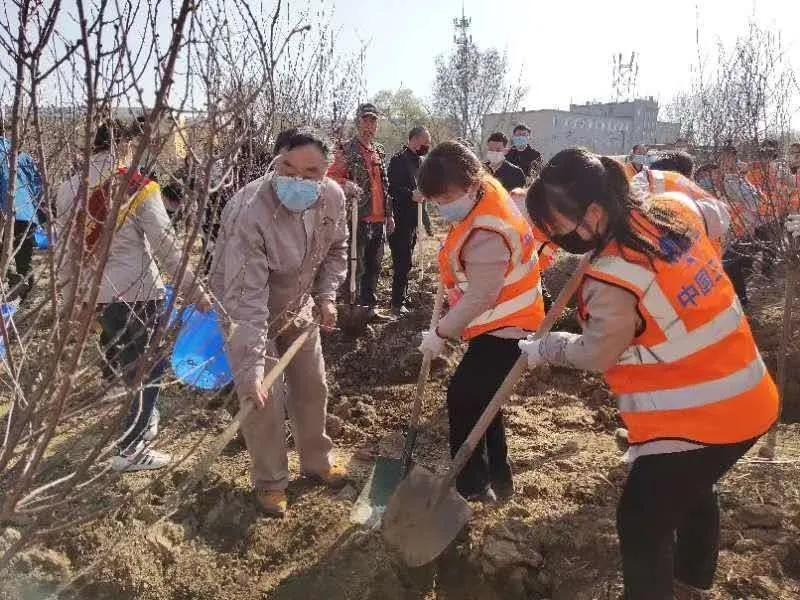 4月3日下午,郭明义爱心团队中国三冶分队“西部片区”志愿者们来到灵山经济开发区,开展义务植树活动,将原本的垃圾废区改造为生机盎然的公共绿地。