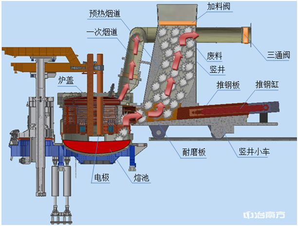 其关键特征体现在新式安全型废钢预热及加料方案、最大程度避免预热竖井漏水入炉风险、可无需烧嘴加热的预热后烟气无害化处理技术、高金属收得率以及废气清洁排放等方面。