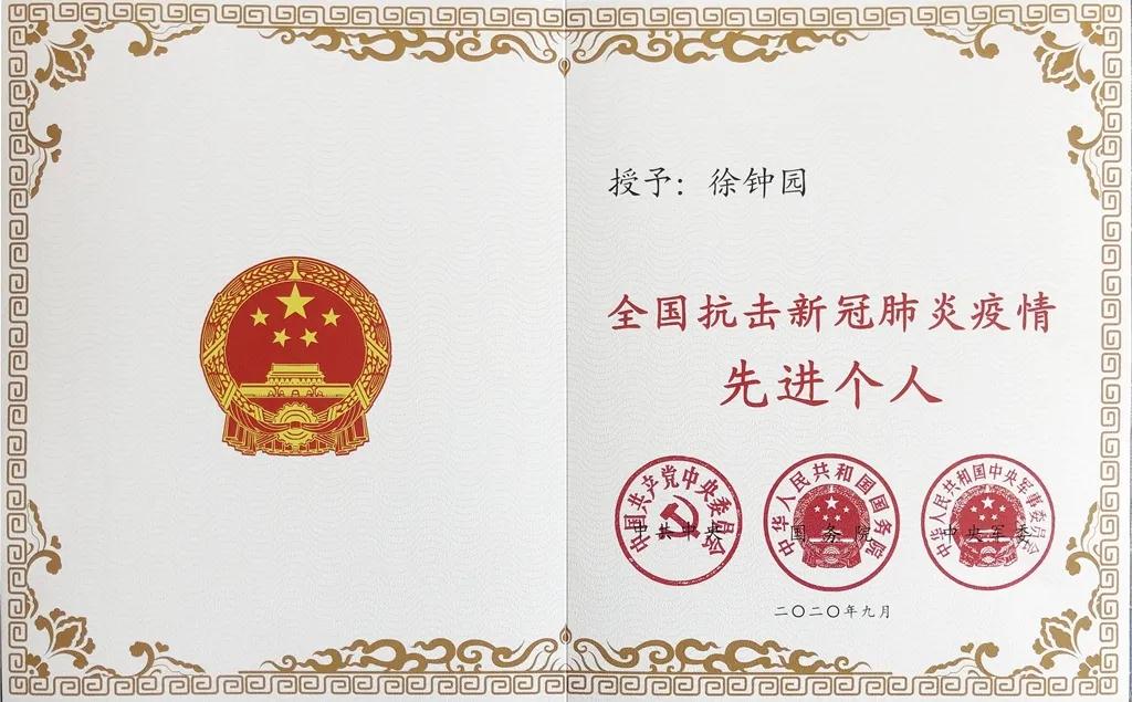 全国抗击新冠肺炎疫情先进个人徐钟园