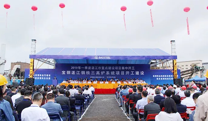 3月29日,宝钢湛江钢铁三号高炉系统项目开工仪式在湛江东海岛宝钢湛江钢铁基地隆重举行,拉开了三高炉系统项目全面开工建设的序幕,标志着宝钢湛江钢铁基地向打造世界一流高效率绿色碳钢基地目标又迈出了坚实一步。
