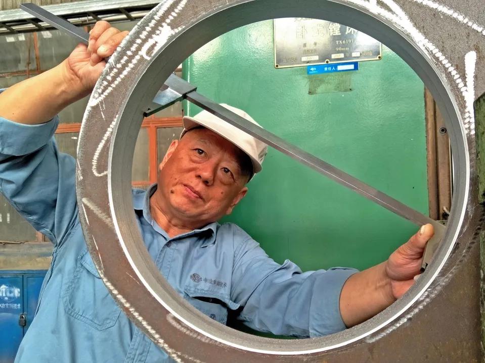 王洪法,是镗床工里的老前辈,干活精细、稳妥。非标设备维修,因结构、形状特殊,是业内公认的难点。但是只要王洪法在,任何奇形怪状的非标设备、镗孔、加工面等等,他都能量体裁衣,制定出一套维修工艺,一件件待修件经他巧手全部复原。