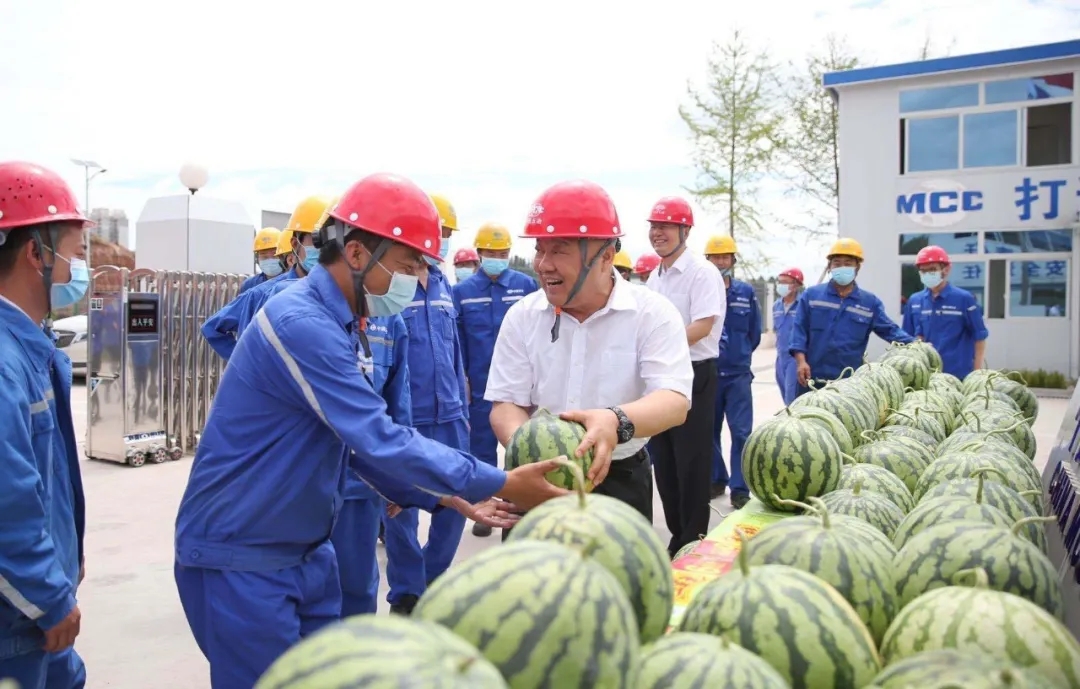 6月28日,中国五冶集团党委书记、董事长程并强,党委副书记、工会主席周悦静等一行来到中国五冶建筑科技产业园慰问员工,为大家送去西瓜、绿豆、清凉饮料、矿泉水等慰问品。 中国五冶集团 邓 超 王域西 摄影报道