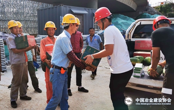 炎炎夏日,持续高温,7月31日,奋战在徐州城东高架桥d的中冶交通三标项目部为坚守在施工一线的农民工兄弟送去一份清凉和一份关爱。