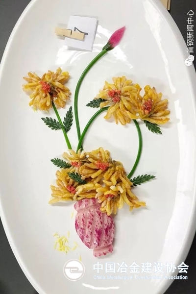决赛现场,25名选手头戴厨师帽、身穿洁白厨师服,在灶台前像魔术大师一般将手上功夫运用得出神入化,把“水火交攻”的把戏玩到炉火纯青,将不同食材、不同调味品,通过不同烹饪手法的变换,以及选手们久经“烟火”的经验和“刀尖”上的历练,使普通食材到达美味的境界,一道道秀色可餐的美食端上餐桌,展示了首钢职工高超的职业技能。