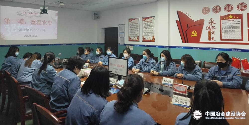3月3日,迎接第111个“三八”国际妇女节到来之际,中冶宝钢基层单位结合建党百年及“十四五”新征程,组织女职工开展“学党史•悦读书”活动,贯彻习近平新时代中国特色社会主义思想及“十四五”精神,激励女职工爱国爱党,奉献岗位,建功立业。