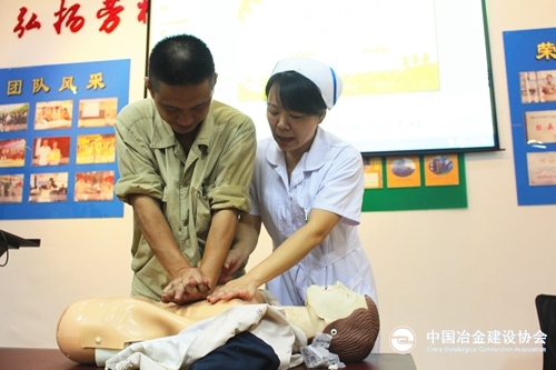 “记住关键的三步,第一步开放气道,第二步捏住口鼻吹气,第三步进行胸外心脏按压……”8月4日,大冶铁矿医疗健康大讲堂走进一线班组,将医疗健康知识送到生产一线。图为大冶铁矿医疗服务小分队成员正在手把手教一线职工心肺复苏急救方法。 (武钢大冶铁矿 方国俊)
