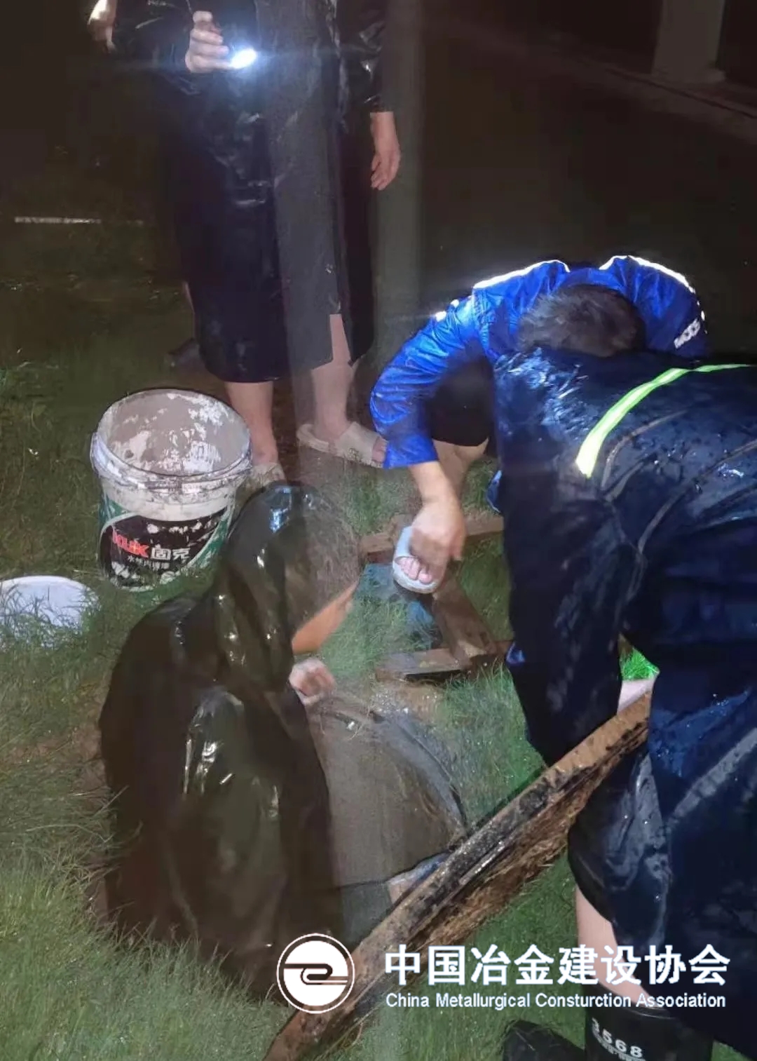 五冶中原分公司立即成立防汛应急指挥部,对各施工现场排查危险源,进行安全摸底,全面拉起警戒线,成小组建制进行抗洪和道路排水系统巡查。在发现中原科技城项目工地周边道路积水上涨,存在积水倒灌进入深基坑的风险后,立即调配公司机关和项目有生力量,携带抽水泵、尖铁锹、强光手电、雨靴、雨衣、应急干粮等前往项目现场,用沙袋堵住施工大门,加固施工围挡,防止外部积水倒灌,并对深基坑内积水实施抽水作业,抢险持续10小时,确保了生产现场平安。在此基础上,五冶中原分公司防汛应急指挥部向郑东新区管委会发出抗洪抢险请战书,与当地街道办、建设单位及时沟通,请求出战进行抗洪抢险,践行央企责任。