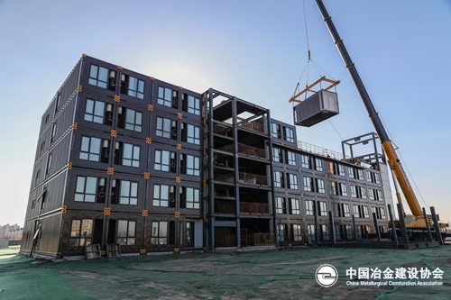 该项目一期工程由2栋5层公寓楼和1栋设备用房组成,总建筑面积9281.55平方米,由314个箱体模块组成。箱体模块之间采用专用连接件进行连接,吊装采用定制的吊具进行吊装,吊具自带手动葫芦可在起吊时对箱体模块进行平衡调整保证箱体顺利就位。此次完成箱体模块安装封顶的2#楼由157个箱体模块组成,家具家电配备齐全,楼内配有物业管理用房、超市、活动室、公共卫生间等,可容纳144户业主入住。完全满足业主生活需求。 (中冶天工集团 曹非男)